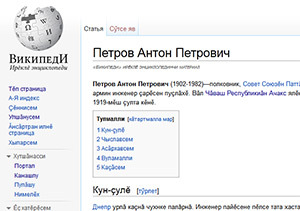 20 000-мӗш статья шутӗнче Петров Антон Петрович пирки ҫырнӑ статья шутланать пулас. Антон Петрович Канаш районӗнчи Ачакс ялӗнче ҫуралнӑ, ҫар полковникӗ, Совет Союзӗн Паттӑрӗ ятне тивӗҫнӗ. Вӑл Днепр урлӑ каҫнӑ чухне палӑрнӑ — Стайки, Ржищев, Аслӑ Бурин тӑрӑхӗсенчи плацдармсене ярса илме пулӑшнӑ, юханшыв урлӑ инженер пайӗсене тивӗҫлӗ шайра куҫарма пултарнӑ.
