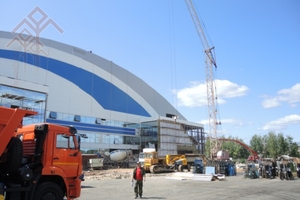 Хальхи вӑхӑтра тимӗр каркаса туса ҫитернӗ, ҫурт сийӗсене вырнаҫтарса тухнӑ, тӑррине витнӗ. Унсӑр пуҫне подрядпа ӗҫлекен организацисем шыв тата пӑх-шӑк пӑрӑхӗсене хурса тухнӑ, ҫутӑ кӗртнӗ. Ӑшӑпа тивӗҫтерекен пӑрӑхсене вырнаҫтарассин пӗтӗм ӗҫ калӑпӑшӗнчен 95% тунӑ. Котельнӑйпа трансформатор подстанцине туса ҫитернӗ, урапасем лартмалли лаптӑкра асфальт сараҫҫӗ. Уйрӑмах нумай тумалли ӗҫсем шутне пӑр керменӗ ҫывӑхӗнчи лаптӑка хӑтламаллине кӗртмелле — ӑна хальлӗхе 20% кӑна пурнӑҫланӑ.