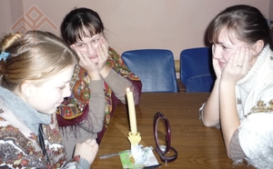 Ҫамрӑксем ӗлӗкхи йӑла ҫинчен калаҫнӑ. Унта хӑйсем те юмӑҫ ярса пӑхнӑ. Хӗрсем хапха урлӑ ҫӑматӑ пенӗ, тӗкӗртен пӑхнӑ. Ҫавӑн пекех ҫӗрӗпе, хутпа юмӑҫ янӑ.