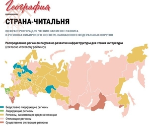 Карттӑра ҫӗршыври чи нумай кӗнеке вулакан регионсене палӑртнӑ. Танлашӑма (рейтинга) кӗнеке вулакан ҫынсен йышне кура мар хатӗрленӗ. Регионта вулавӑшсен, издательствӑсен, кӗнеке лавккисен, кӗнеке мероприятийӗсен хисепне шута илнӗ.