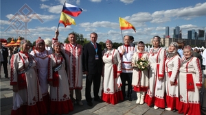 Фестиваль сцени ҫине наци ушкӑнӗсем кӑна мар, республикӑсен официаллӑ элчисем, ертӳҫисем, диаспорӑсен элчисем тухнӑ. Юлашкинчен фестивале хутшӑннӑ мӗнпур ушкӑн тухнӑ. Вӗсем тӳпене Раҫҫей ялавӗ тӗслӗ сывлӑш хӑмписем вӗҫтернӗ.