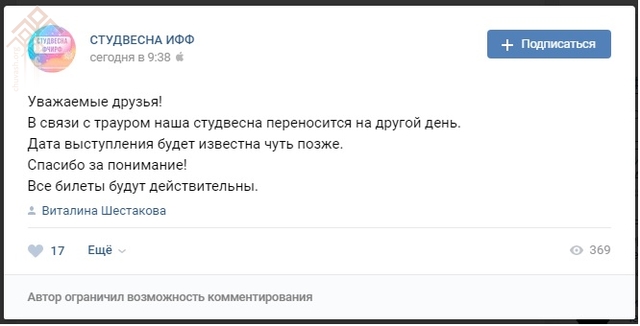 Паян, пуш уйӑхӗн 27-мӗшӗнче, И.Я.Яковлев ячӗллӗ ЧППУн «Студентсен ҫуркунни» уҫӑлмаллаччӗ. Анчах Кемӗрти инкеке пула мероприятие урӑх куна куҫарнӑ.